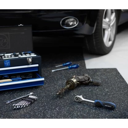 Die Allzweck-Gummi-Matte aus Regupol 6510G, einem PUR-gebundenem Gummigranulat ist besonders rutschhemmend und vielseitig einsetzbar. So lässt sie sich hervorragend auch als Unterlage für handwerkliche Arbeiten, als Anti-Rutsch-Matte im Kofferraum oder z.B. für Fitnessgeräte verwenden. Die Gummi-Matte ist außerdem vibrationsdämmend. Das Material ist temperaturbeständig von ?40° bis +115° C. Besonders nachhaltig: Das Produkt besteht aus recycelten Autoreifen. Die Unterlage hat die Abmessungen (H x B) 200 cm x 100 cm und eine Stärke von 5 mm.