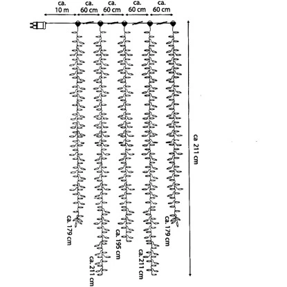 – Länge der Stränge in cm: 179, 211, 195, 211, 179