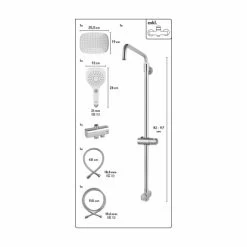 Die Brausen verfügen über Antikalk-Noppen. Dadurch sind sie besonders leicht zu reinigen. Die Handbrause ist mit einem Brauseschlauch mit dem Duschpaneel verbunden.