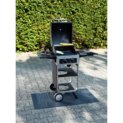 Die praktische Wenko Spritzschutzmatte Suma 120 cm x 60 cm in Schwarz ist wasserfest und abwischbar und lässt sich clever unter dem Grill positionieren. Ausgestattet mit einer Anti-Rutsch-Beschichtung steht der Grill auf der Kunststoffmatte mir 0,5 mm Stärke an gewünschter Stelle und eventuelle Fettspritzer werden zuverlässig aufgefangen. Das schützt die wertvollen Fliesen unterhalb des Grills. Die Matte ist wasserfest und kann bei Bedarf einfach abgewischt werden. Sollte die Grillsaison doch einmal vorbei sein und der Grill mit Schutzhülle verstaut werden müssen, so können Sie die schwarze Matte platzsparend zusammenrollen.